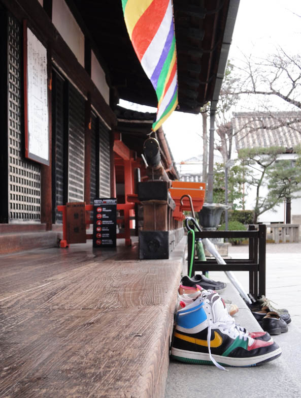 Heian Shrine Torii Gate in Kyoto.East meets West on the steps of the To-ji Temple compound.